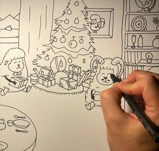 Disegno da colorare - La mattina di Natale con Mamma e Papà